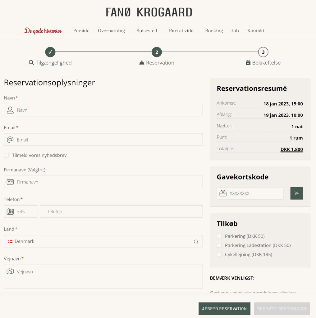 Bookingformularen på deres hjemmeside er integreret med deres eksisterende design.