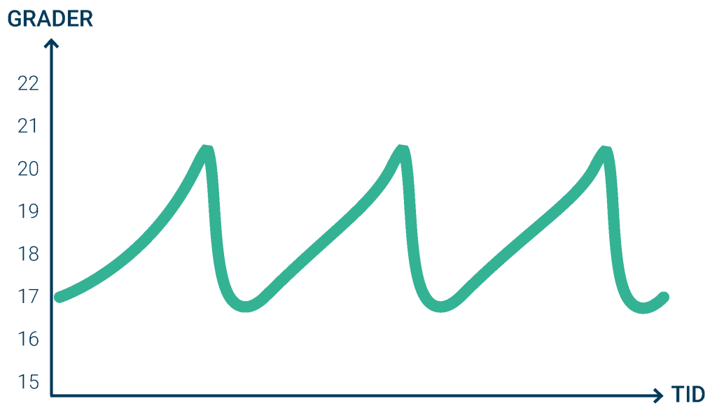 • Kl. 23 er der igen nattesænkning til 17 grader.